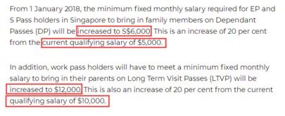 给父母申请长签,主申的月薪申请标准从8000新币上调至10000新币。