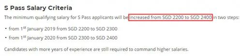 S准证的月薪申请标准从2300新币上调至2400新币。