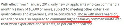 注:从2017年开始,符合基本薪水和学历不止是硬性要求,人力部还会着重检阅申请人经验,并要求申请人获得与工作经验和技能相符的工资。