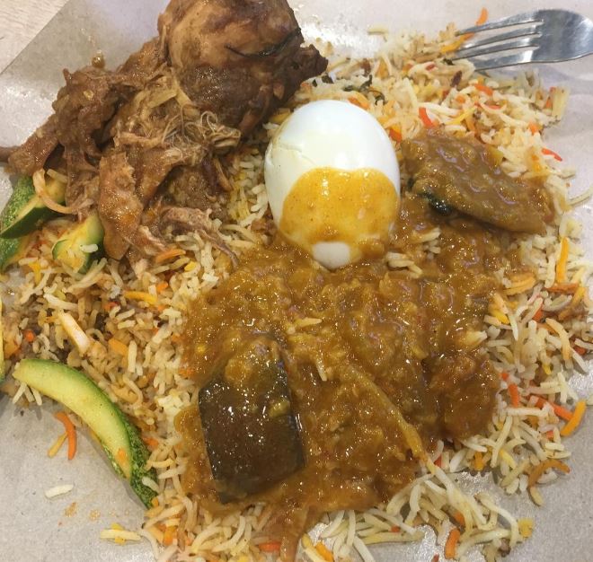 这家的Nasi Briyani($8)包含了腌黄瓜,印度脆饼和任您选择的一块肉类,再搭配热腾腾的饭食用,绝对让您捧著肚子回家。您也可以多付$1来得到额外的一杯咖啡或茶哦!