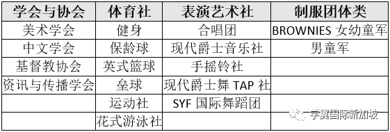 学校的CCA共有以下课程: