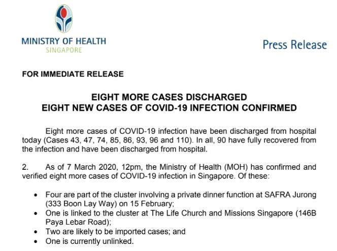 病情:3月4日被隔离,3月5日确诊。可能是新加坡第一例在医院内感染新冠病毒的病例