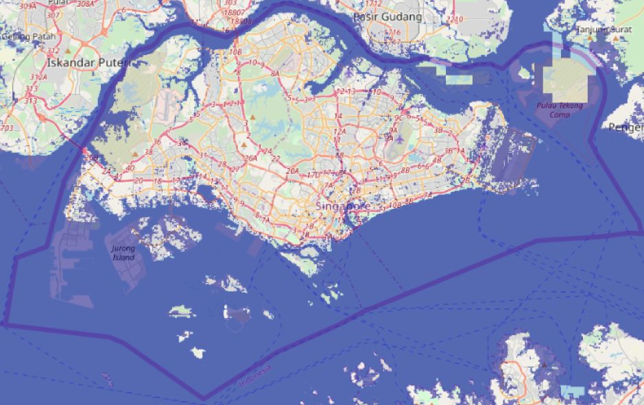 新加坡的海拔高度,当海平面上升7米时图中深色部分都将被淹没