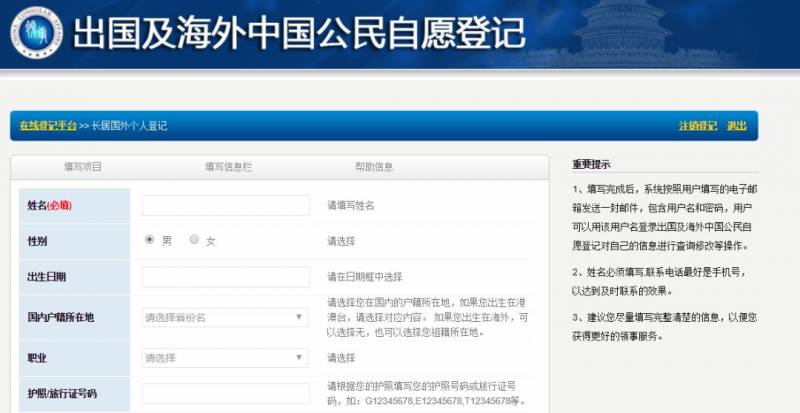 根据自身情况,选择“短期出国个人登记”或“长居国外个人登记”。
