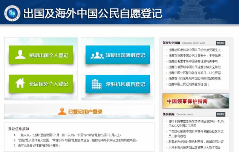 扫码下方二维码登录“出国及海外中国公民自愿登记”网站