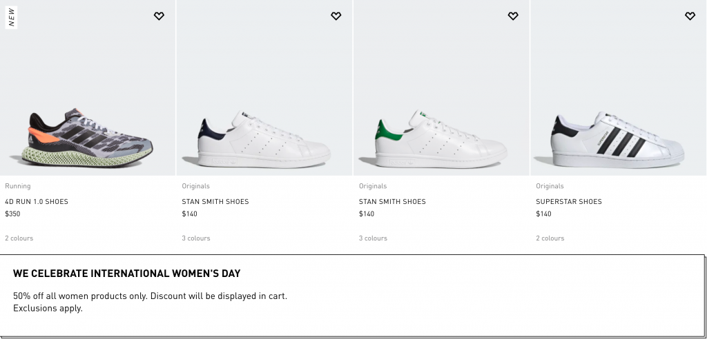 新加坡阿迪达斯3.8节送巨礼!全场女生产品通通半价!免费邮寄上门