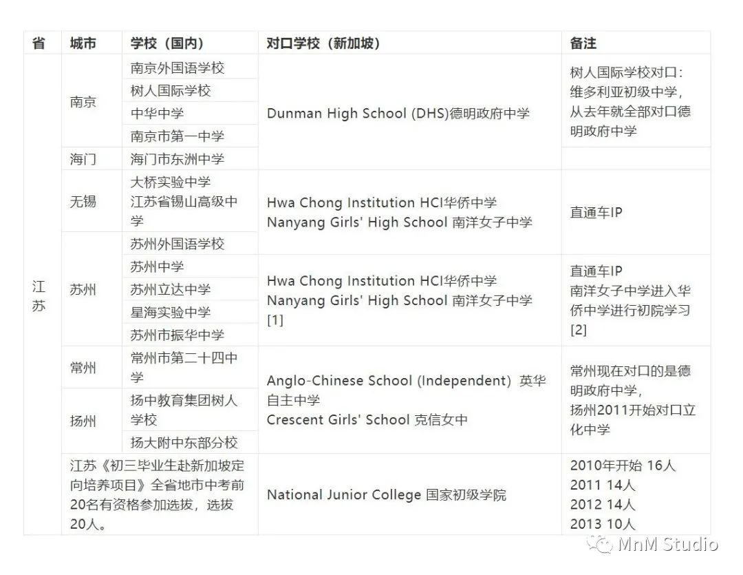首先,江苏各大市中考前20名的优秀毕业生(学霸)可以报名参加笔试、面试,选拔20人(学霸中的学霸)入读新加坡国家初级学院;其次,南通仅有一所中学,海门市东洲中学,名列报名资格榜,和南京几所名校的学生一样,有资格报考德明政府中学,这里有点遗憾,南通仅有一所对口中学。我没能从江苏省教育厅网站找到相关的政策说明。信息搜索过程中,很高兴看到2017年海门中南东洲国际学校初中部1435班张文清同学被国家初级学院(NJC)录取的喜报,一对双胞胎姐妹中的姐姐,我特地引用了一篇她的短文,简短描述考试和录取这段难忘的经历。祝张文清同学前程似锦!