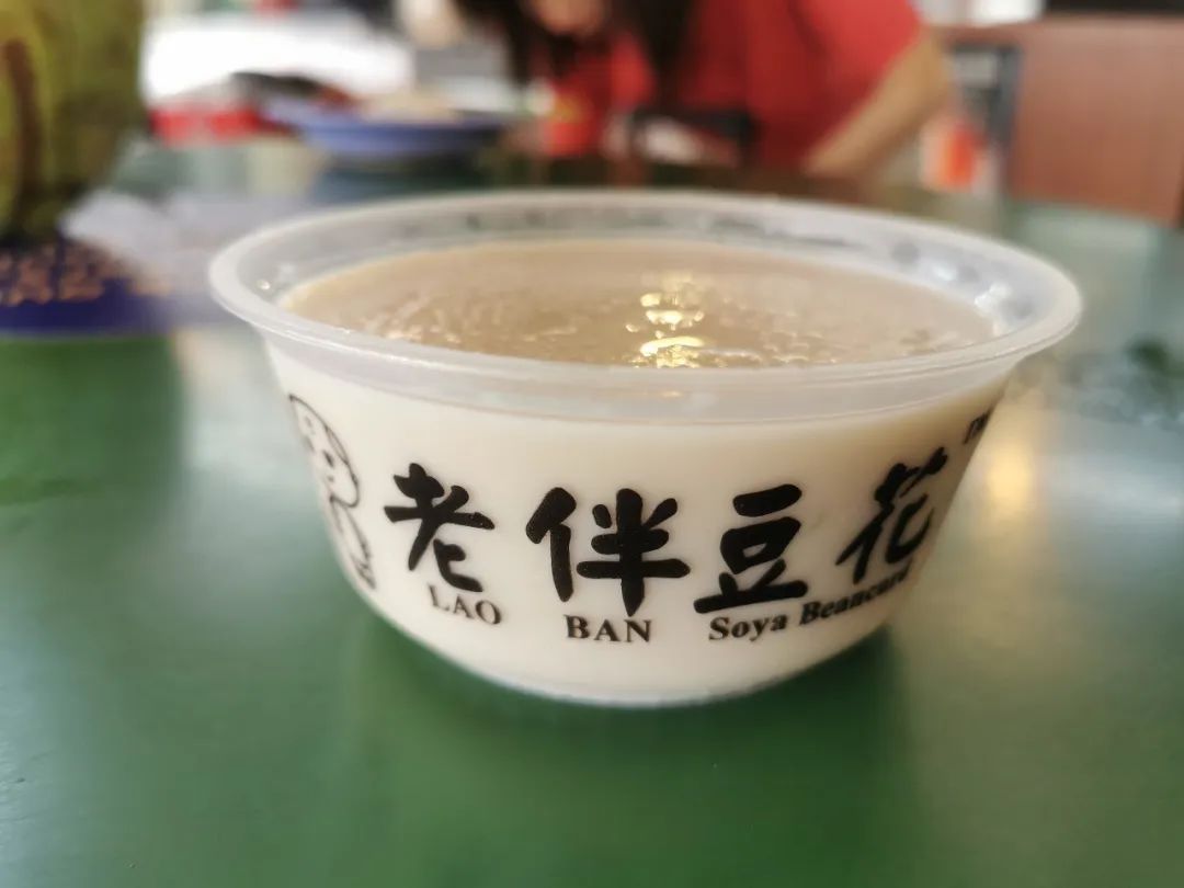 老伴豆花:和天天海南鸡饭在同一个美食城,是一个老头在经营。有原味、杏仁几个口味,我点的原味。好喜欢!!!从冰箱里拿出来冰冰凉凉的口感,弹嫩又入口即化,还带着恰到好处的甜味,是让人第一口惊艳的味道!推荐!!人均15rmb左右