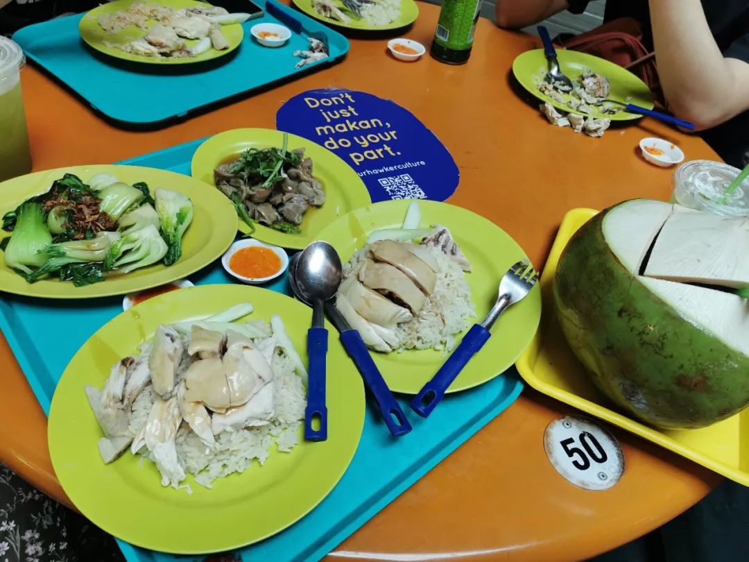 天天海南鸡饭:在牛车水一个美食城的摊位上,排队人挺多的,但出餐快,所以大概排15-20分钟左右可以轮到。这个海南鸡饭真的挺一般的,除了鸡肉比较嫩滑,分量比较大以外,并没有其他值得排队的地方...... 人均40rmb左右 (图上的椰子就在天天海南鸡饭对面,只要几新币,超大一个,喝到饱!喝到吐!)