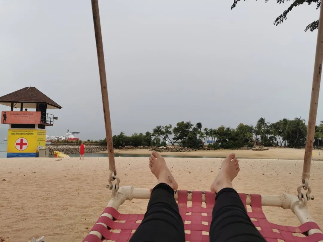 由于我是和家人出行,我们都对环球影城以及海洋馆没有兴趣,于是主要就去了后面两个站点。印象深刻的是海滩站里的巴拉望海滩。去的那天是阴天,还下了一点小雨,我们脱了鞋走在沙滩上。穿过网红吊桥走到另一半小岛上,然后躺在沙滩边的吊床上休息。孩子们和一些奇怪的两栖动物在沙滩上和平共处,晚风轻拂,落日将至,这样惬意和缓慢的生活节奏还挺令人怀念的。