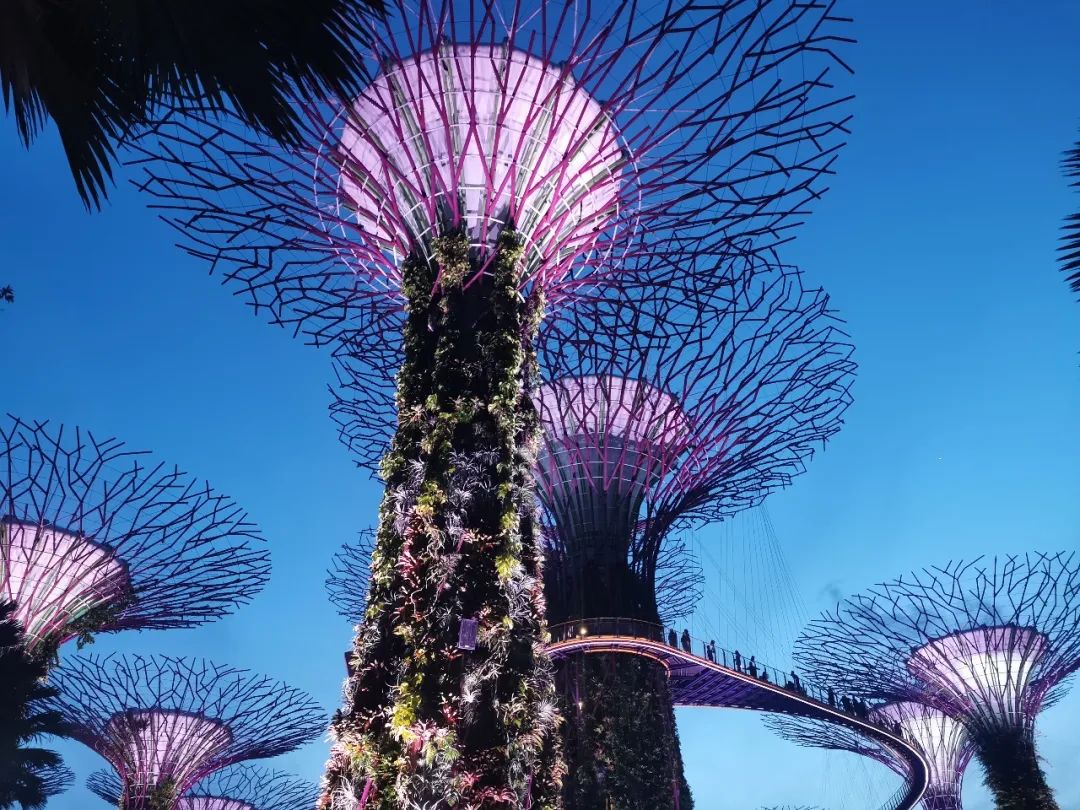 晚上的超级树灯光秀是滨海湾花园的主打项目。有19:45 和20:45 两场,持续时间10-15分钟。建议提早一些去树下找一个舒服的位置等待,避免人流太大没地方站。灯光秀中规中矩,没什么惊艳的地方,但是作为一个免费项目,如果有时间还是可以观赏一下。