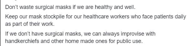 翻译:不要浪费医用口罩,如果没有感觉到不舒服的话!。。。如果我们口罩不够,可以自己发挥做一些。