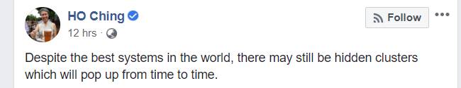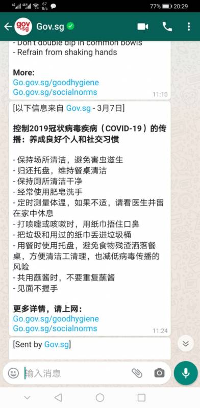 来源:NUS facebook 2020/02/10 分发30万个口罩给乘客和司机 新加坡交通管理局宣布,将会给新加坡全岛的计程车司机和Grab司机分发30万个口罩,让他们更好的保护自己不受新冠病毒的感染。 但个口罩旨在让司机提供给那些感觉不舒服,所以搭车去就医的乘客。 2020/02/13 分发100万个口罩给全岛私人诊所 4个家庭医生写了联名信,呼吁大家出门就戴口罩!新加坡政府马上就派发了100万个口罩给全岛的私人诊所。 2020/02/14 人力部MOM已经处罚了4个工作准证持有者。他们没有遵守14天自我隔离令,最终被取消工作准证,并且永久不能来新工作。当天,遣返了2个未经批准就返回新加坡的准证持有人,取消工作准证,永久不能来新工作。 并且,人力部MOM让每个在隔离令期间的人员,必须实时汇报自己的位置,用GPS定位系统,必须在1小时内汇报自己的位置,非常严格。 2020/02/16 新加坡财政部长王瑞杰宣布,针对新型冠状病毒带来的经济影响,将做一系列的补偿措施,从家庭补助到企业补助。 2020/02/17 强制居家隔离令,从海外感染国回新加坡后,必须14天不能出门在家隔离。采取了一系列,定位追踪,视频电话等措施确保被隔离者确实执行了隔离令。