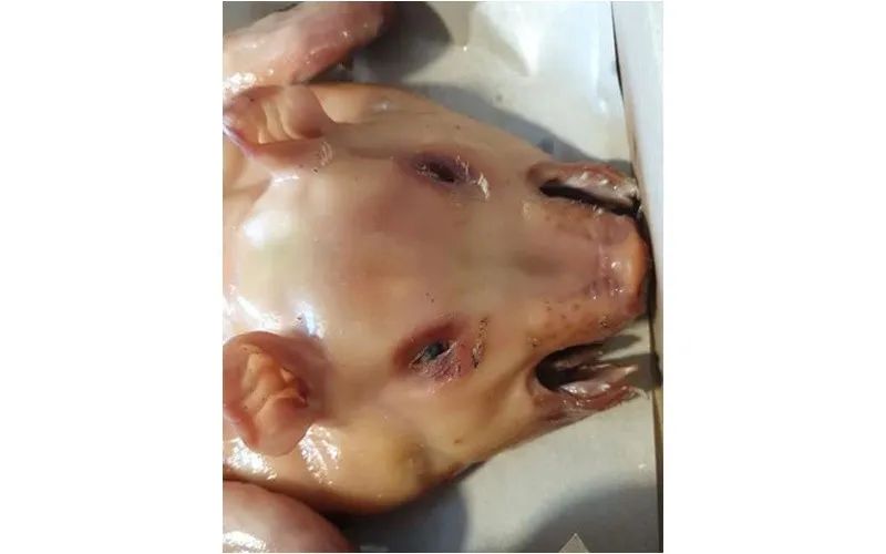 买回家的烤乳猪颜色太苍白,女子因此怀疑乳猪没烤熟。(互联网)根据她上载的照片,店家虽说乳猪是烤的,但其表皮却是白苍苍的,跟一般金黄色的脆皮乳猪相去甚远,而且猪的眼睛部分似乎有黑眼圈,甚至有浑浊的眼白,看起来像未烤熟。 家人尝试把乳猪放进气炸锅(air fryer)烤五分钟, 但乳猪的皮依旧是软绵绵的,一点也不香脆。 她拍下这只乳猪的照片,通过WhatsApp询问烧猪专卖店的负责人,对方一再向她保证这只乳猪已烤熟,请家人放心。中峇鲁烧猪专卖店的负责人卓先生(30岁)受访时证实此事,他指出,通过协商后,对方已经接受他全额退款的建议。