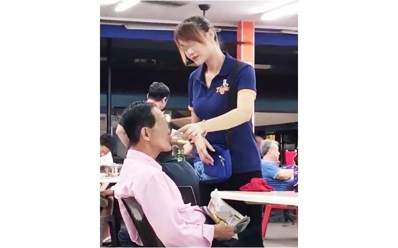 啤酒妹喂顾客喝酒。(取自面簿)“那名阿叔是她的熟客,每天都来喝酒,当时她问阿叔要不要喝酒,阿叔说喝,但又在看报纸,她就顺手喂他,无心的举动罢了。”摊贩指出,没有网传的要付50元钱,也没有所谓的坐大腿这回事。 新加坡亚太酿酒厂(APB)受询时表示,公司已得知此事并已调查,涉事的啤酒促销员被严厉警告,将会转去其他地点工作。