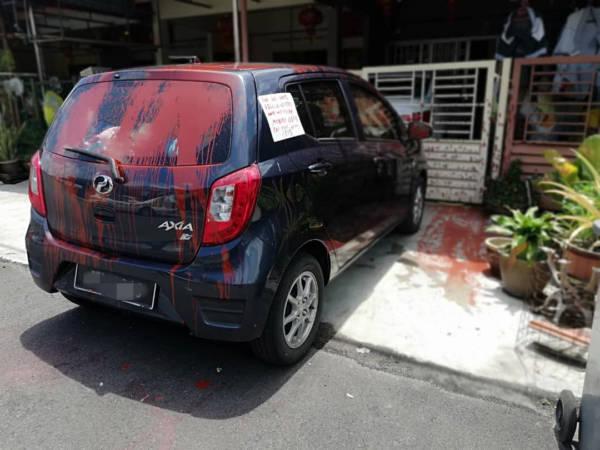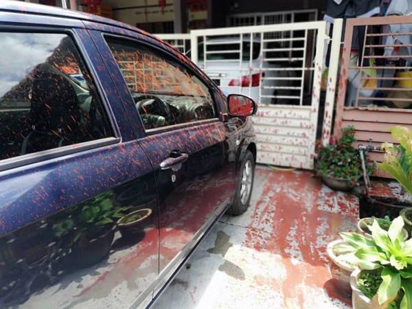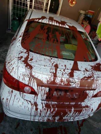 3月8日早上轮到黄艾珍女儿的轿车被泼红漆。