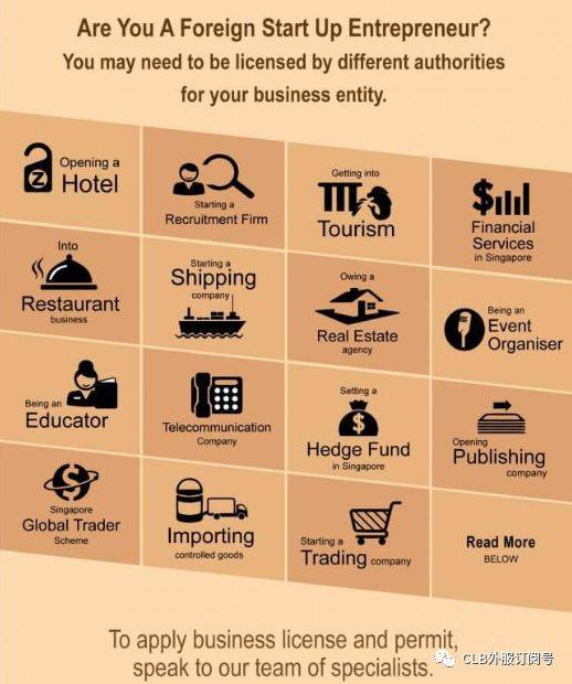 在新加坡大多数公司无需执照或准证就能营业,但某些行业如饮食、职业介绍所、私立学院、旅行社、售酒、贷款、银行、托儿所等等,受当局条例管制,必须持有相关营业执照。当您在新加坡会计与企业管理局(ACRA)注册公司名字时,系统可能会自动告知,是否需向其他单位先申请营业执照,但是如果想确认的话还是需要咨询相关政府部门或者行业顾问。