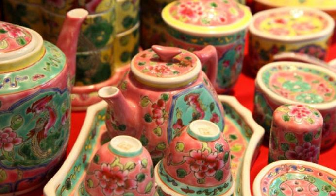 19世纪中期至20世纪30年代期间,马六甲海峡一带的土生华人常从景德镇专门订制一种粉彩瓷器,用于婚礼、寿宴、节庆等庆贺场合。这种瓷器后被称作“娘惹瓷”。娘惹瓷色彩鲜明且风格统一,多有以下特点: