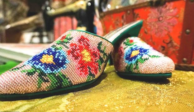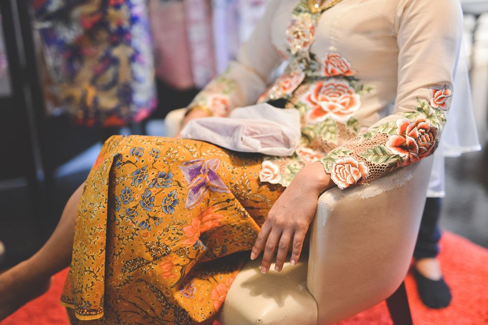 上下身份离的设计不仅方便穿着,而且剪裁更能展现女性的婀娜身形。考虑到新加坡闷热潮湿的气候,娘惹服饰多选用轻纱面料,美观又凉爽。上衣的绣花也少不了中国元素,梅花、牡丹、凤凰等最是常见。出席正式场合时,一身华服配上一双珠绣鞋(Kasut Manek),娘惹的身份尽显无疑。