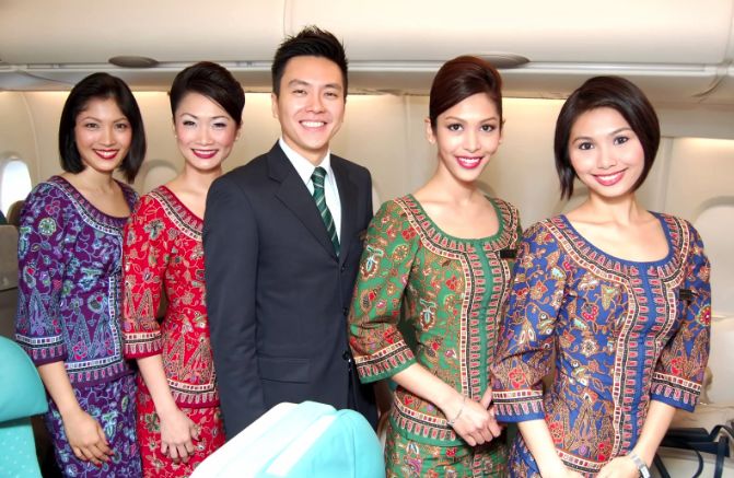 新加坡航空公司女性空乘人员的制服,就是改良过的娘惹服饰。红绿蓝紫,各色的蜡染花布与传统刺绣花纹相得益彰。南洋女性的优雅迷人,一目了然。