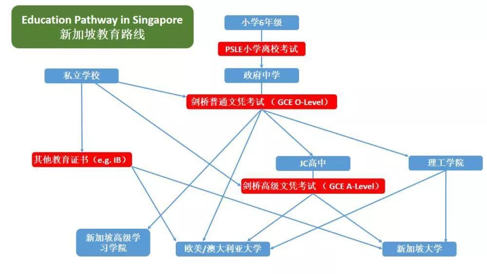 国际学生可以直接在语言学校准备O水准考试,凭借优异的成绩入学新加坡理工学院,初级学院。也可备考A水准考试从而进入新加坡国立大学、南洋理工大学等名校。
