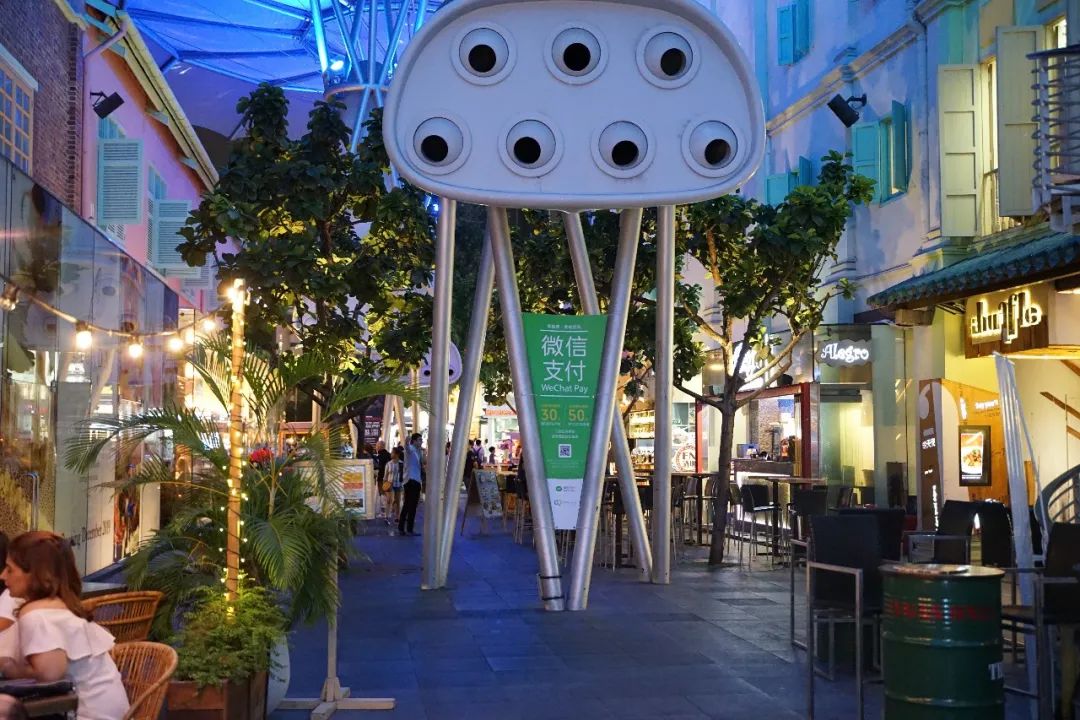 餐饮部分有瑞士料理、波斯料理、日本料理、中华料理、古巴料理、印尼料理,据说不定时地还会举办德国啤酒节等风格各异的活动来吸引人们的驻足。咘咘还惊喜的发现了这里有来自国内网红的奶茶店喜茶(HeyTea)以及体验感闻名的海底捞火锅(Haidilao Hot Pot),店内排队的情况火爆,看来两家店在新加坡同样受欢迎。