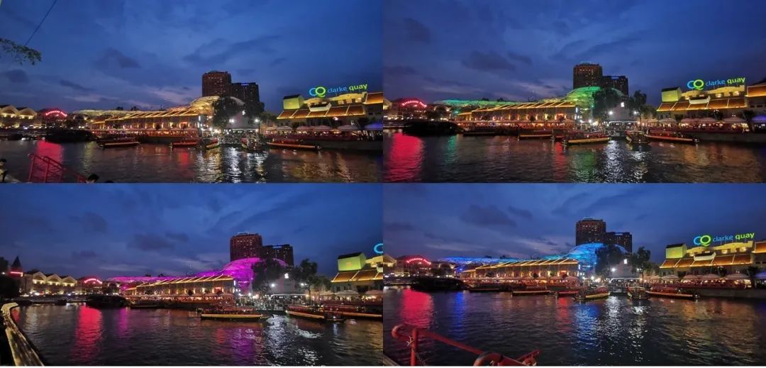 河岸的店铺以及顶棚都进行了统一的灯光设计,顶棚的灯光颜色不停变化,倒映在河面上,五彩斑斓的光影效果,让克拉码头夜色显得格外耀眼迷人。