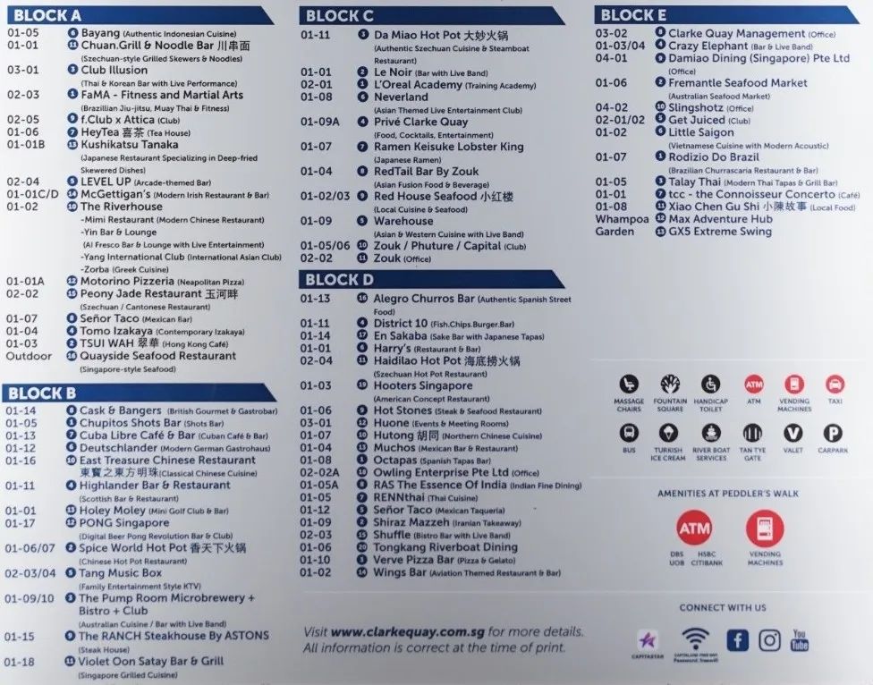 娱乐部分有世界级TOP6的Zouk Singapore娱乐中心、风格不同的酒吧、家庭娱乐型的KTV (Tang Music Box),也有拥有超级刺激体验的G-MAX逆转蹦极跳。国际化娱乐项目植入,营造休闲娱乐的峰值体验,形成克拉码头多元化的文化魅力。沿着的中心商业街Read RD.继续往前走,来看看克拉码头里面都些什么吸引人的地方~ 原先旧建筑的门面外面加了许多玻璃结构,沿街酒吧为半开放式,吧台延伸到了街道上,让人很有坐下来畅饮一番的冲动。Read RD.道路宽度相对较大,平时可以做餐饮的露天外摆,而周末跳蚤市场营业时可以做零售摊位等。