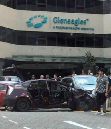 《联合晚报》日前报道,2018年10月4日早上11时20分左右,鹰阁医院(Gleneagles Hospital)入口处,靠近紧急部门的地方发生一起连环车祸。一辆SMRT德士原要让乘客下车,岂料德士司机误把油门当刹车器,导致德士往前冲,撞上另外三辆车子,包括一辆得运(Transcab)德士和另外两辆汽车。
