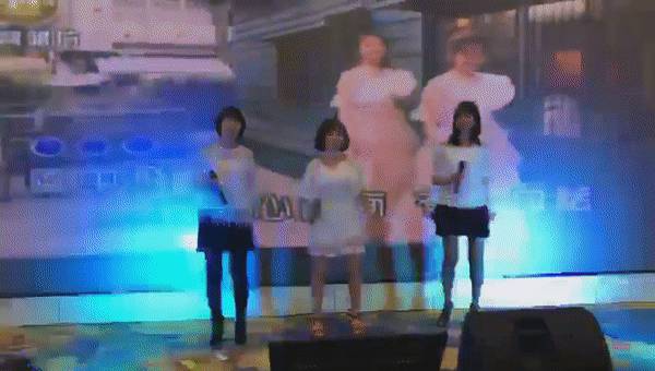 有些人还上台表演了一首福建歌曲纯情花,看似玩得非常开心。还有许多观众上台,给这三名女歌手红包,并为她们挂花: