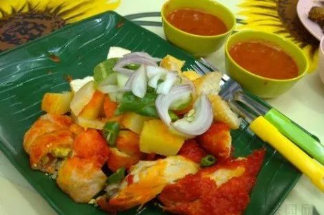 这道菜虽然看起来普通,不过口感非常不错,这也形成了新加坡菜的一道亮丽风景。罗惹口味酸甜,酱料与新鲜蔬果恰到好处地融合在一起。色泽黑黝黝的虾膏酱尽管其貌不扬,却味道鲜美,让人无法抗拒。