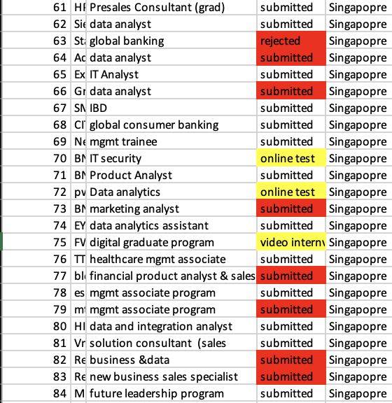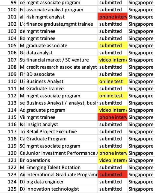 W是5年前来到新加坡的,她是SM2(中新奖学金项目)得主,毕业后需在新加坡工作6年。在来临5月她即将从大学毕业,可是投了许多份简历,也已经接到过12家公司(多数是银行和科技公司)的线上测试、电话、视频面试,有的甚至都进行到了最后一轮面试。但在疫情爆发后,公司给她的回复一律变成了:再等等我们的消息......W应聘的公司职位及应聘进度清单: