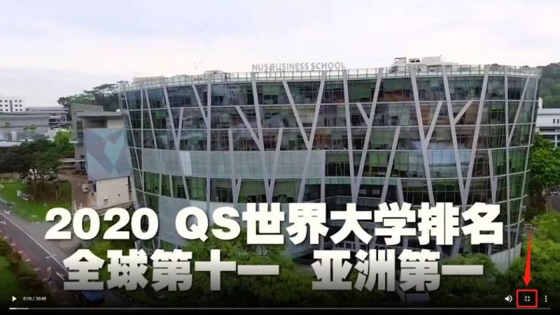 将鼠标移到视频播放区,右下角会出现小图标,点击中间的按钮即可全屏观看;