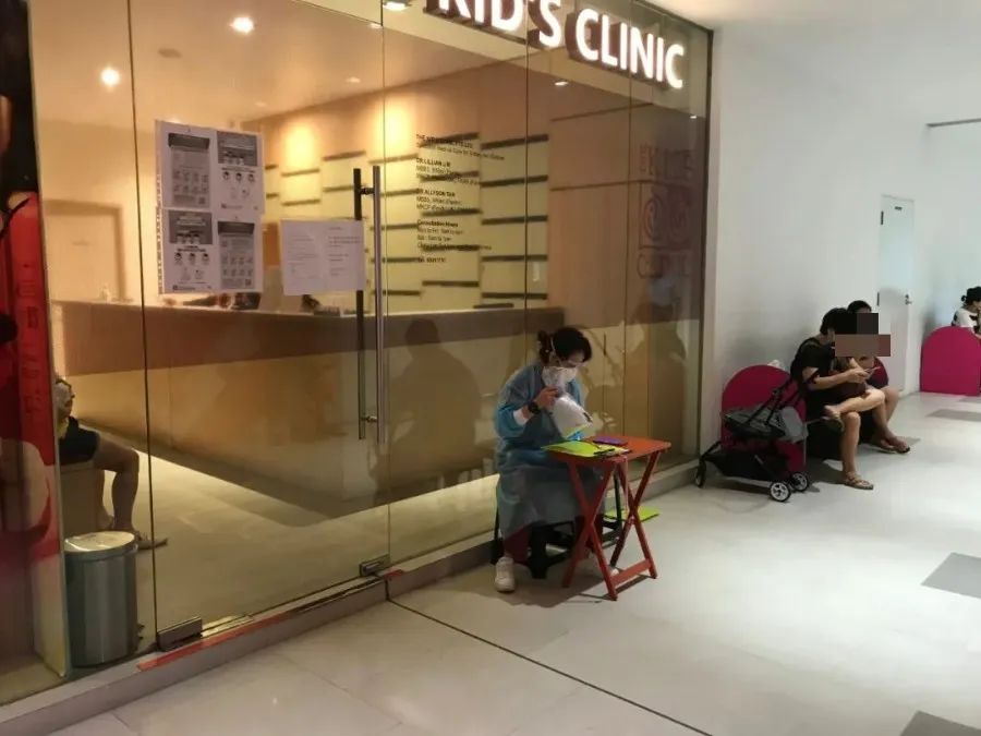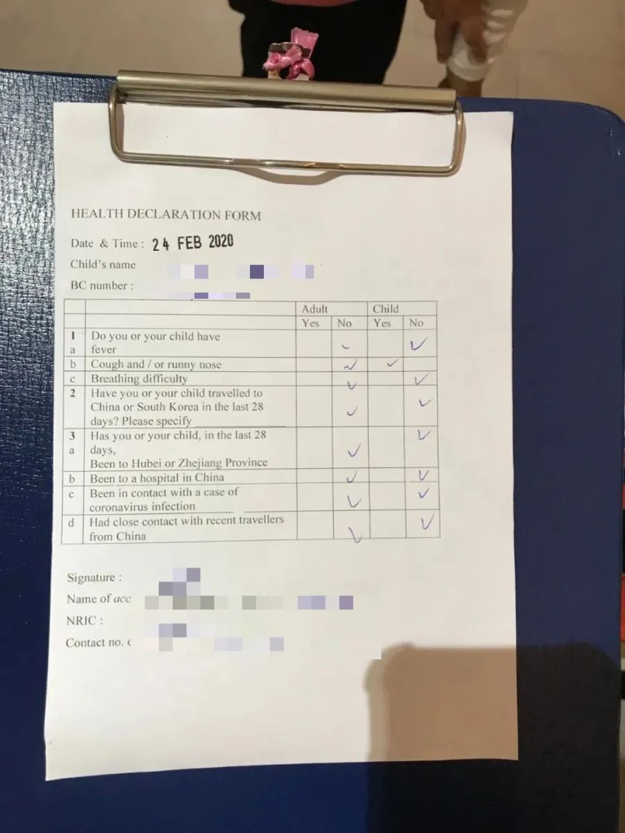 非常时期,儿科诊所也都很谨慎,护士穿着隔离衣,戴着护目镜在门外做登记。在诊所外面需要测量体温,填写资料,这是为了日后方便追踪。