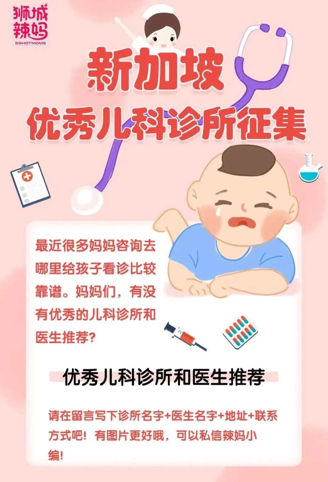 基本上我的三个孩子都是DR.LIM看大的孩子的病症表现很复杂,优秀的儿科医生拥有更治疗经验,也让家长更放心,孩子少受罪。但是新加坡也蛮大,如果专门为了一个儿科诊所跑来跑去也是很麻烦。所以,我们想要跟粉丝们征集一些特别有经验的儿科医生和儿科诊所,公布出来,让更多的家长和孩子可以受惠。请把你推荐的儿科诊所和儿科医生,以及他们的联系方式,在文末留言给我们,或者私信给辣妈小编。