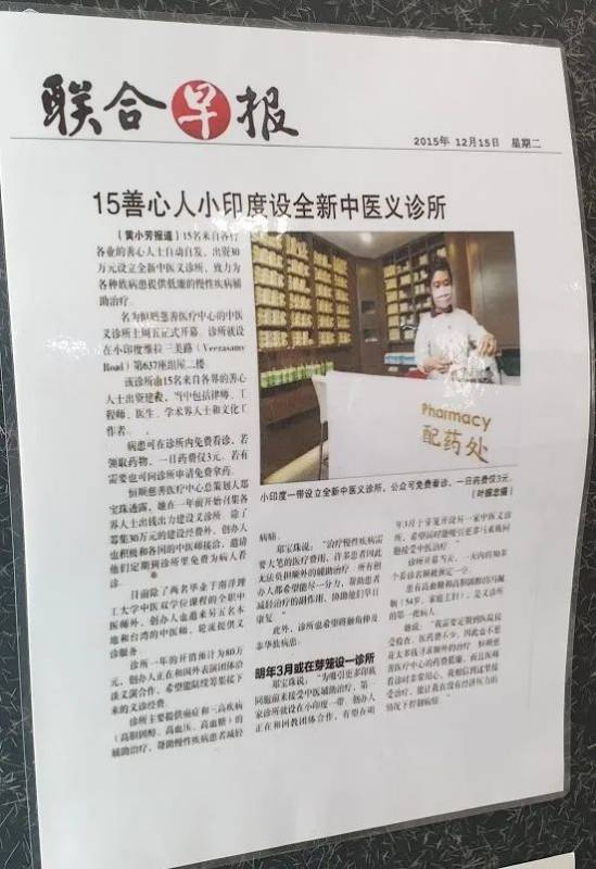 那个午后,芳姐带我来到恒顺慈善医疗中心。终于见到了时常在芳姐口中的朋友Monica。初次见面感觉很亲切。简单干净的诊所里井然有序的放着各种中药。墙上挂着各大媒体的报道让我觉得十分好奇。Monica和她的团队一共15个来自各行各业的善心人士自动自发,出资30万元设立了全新中医义诊所,致力为各种族病患提供低廉的慢性疾病辅助治疗。这让我十分惊讶。