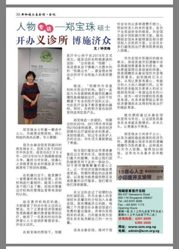 曾在慈善机构担任总经理的Monica说,她接触过很多癌症患者,因无法负担额外的辅助治疗减轻疼痛而对生存失去希望,他们希望能为这些人提供低廉的药费,以及高素质的医疗护理。所以战营的团队力量非常重要。恒顺也提供心灵健康辅导,辅导师拥有专业心理辅导硕士学位,是新加坡辅导协会(SAC)的合格会员,具备丰富的辅导临床经验。恒顺也会定期举办养生保健讲座。