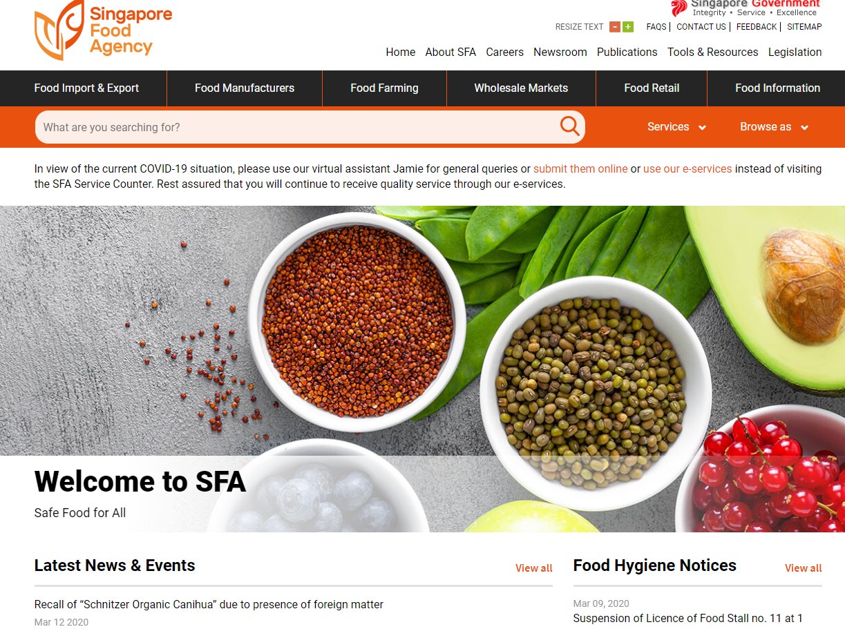 新加坡食品局在这方面做的也是很严格的。