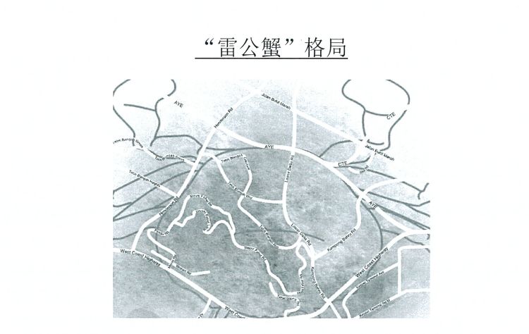 位于花柏山上的“雷公蟹”是一种雄伟的生物,有一个大而突出的钳子。圣淘沙与布拉尼岛和货柜码头都坐落在“雷公蟹”的大钳子上,并且由布拉尼岛和圣淘沙构成了其钳子的轮廓。