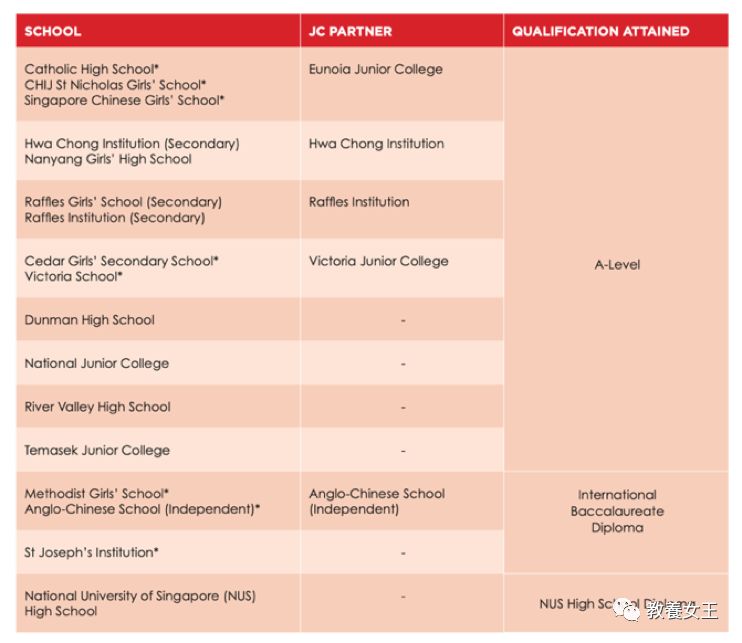 六年直通车针对学术成绩非常优异的学生,并为他们提供更独立、低结构化的学习模式。6年的课程包括4年初中和2年初级学院,中途不需要分心准备O Level考试,只需要在中六结束时直接参加大学选拔考试。进入六年直通车的学生中,有90%的学生会进入大学。所以能够进入直通车,就基本等于锁定一个大学名额了。目前有17所中学提供直通车课程,其中有3所备考IBDP,1所备考新加坡国立大学高中文凭,其余均为A-Level。