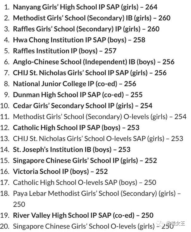 小学6年级,学生将参加毕业会考 Primary School Leaving Examination (PSLE),这个成绩将决定大多数学生未来升读何种中学。小六会考一共考四门:英语、母语、科学和数学,总分300分。想要进入到新加坡排名前20的中学,需要考到250以上。