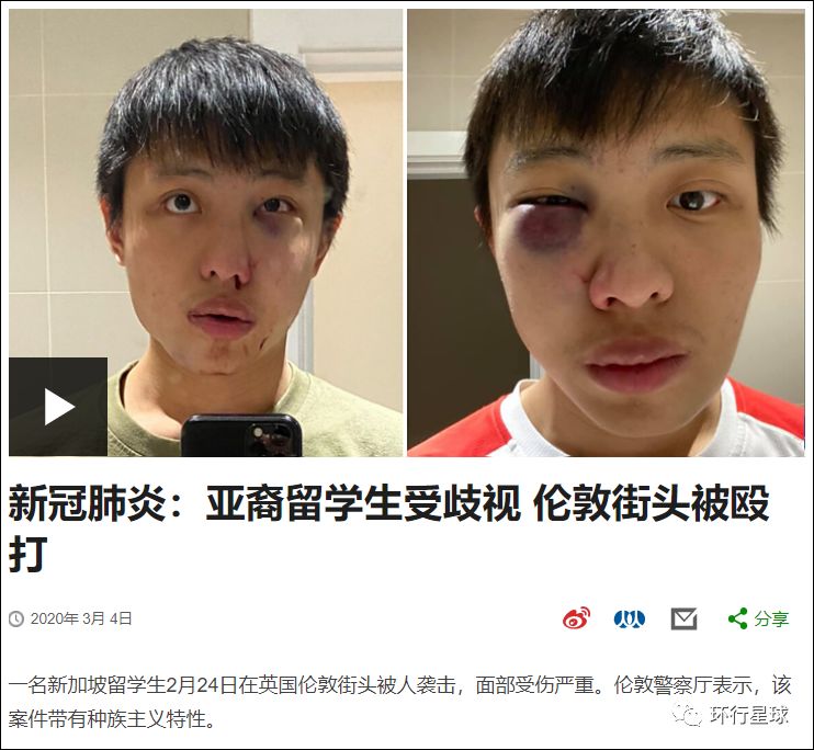 新加坡学生因为是华裔,在英国被侮辱为“新冠病毒”并被殴打。图:bbc.com