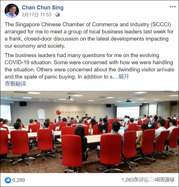 在疫情关键期,政客还发生了戏剧性插曲。2月18日总理公署部长陈振声在新加坡中华总商会的一段关于控制疫情的内部讲话录音被泄露,在网上疯传。