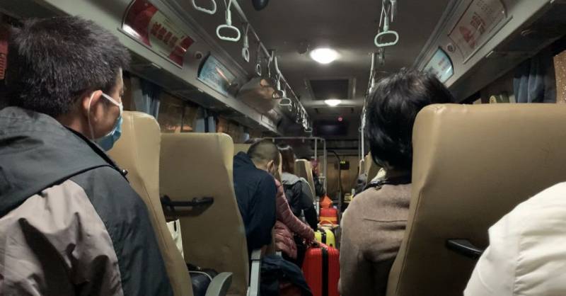 一出机场,就有拿着纸质表格的人在点名,然后安排上大巴。父亲尝试来机场,但是没办法接我回去,只好通过工作人员给我递了个包裹(所以如果你要被隔离,可以通知家属送必需品过来的)。上车,一人一排座,二十几个人就占满了一辆大巴,被拉往机场附近的一家酒店。