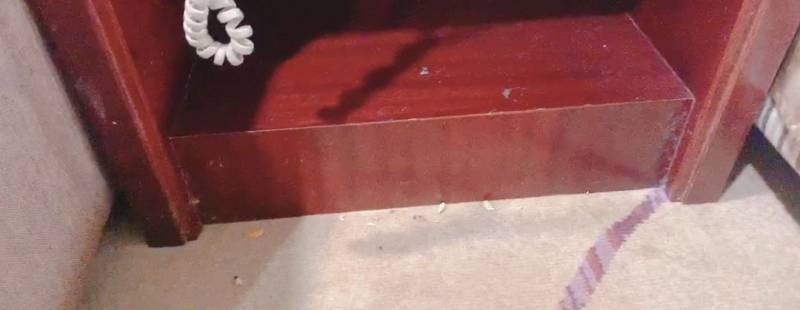 我隔离的酒店卫生状况有些堪忧,床头地板有房客吐的桔子籽,桌面有落灰。