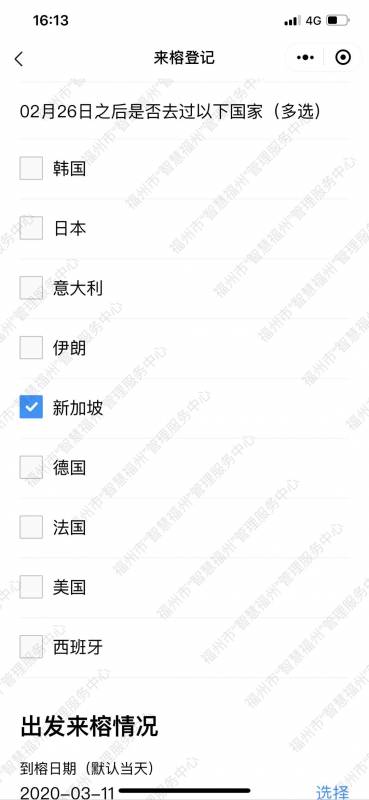 勾选过往14天内去过的国家中,新加坡与韩国、意大利等地被单列选项,看了下都是近期疫情爆发的地方。