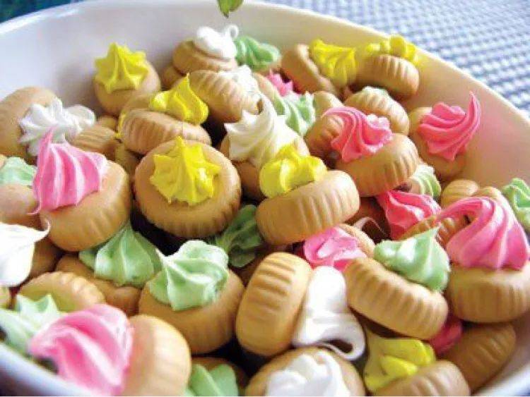 圆圆的饼干上面点缀著五颜六色的彩色糖霜,可以说是我们的集体回忆。