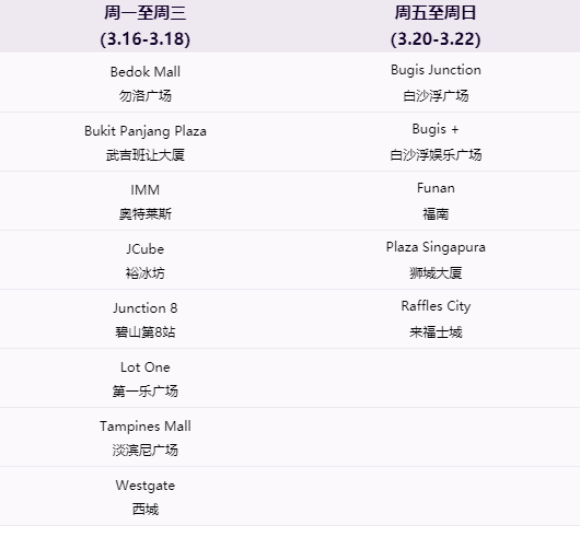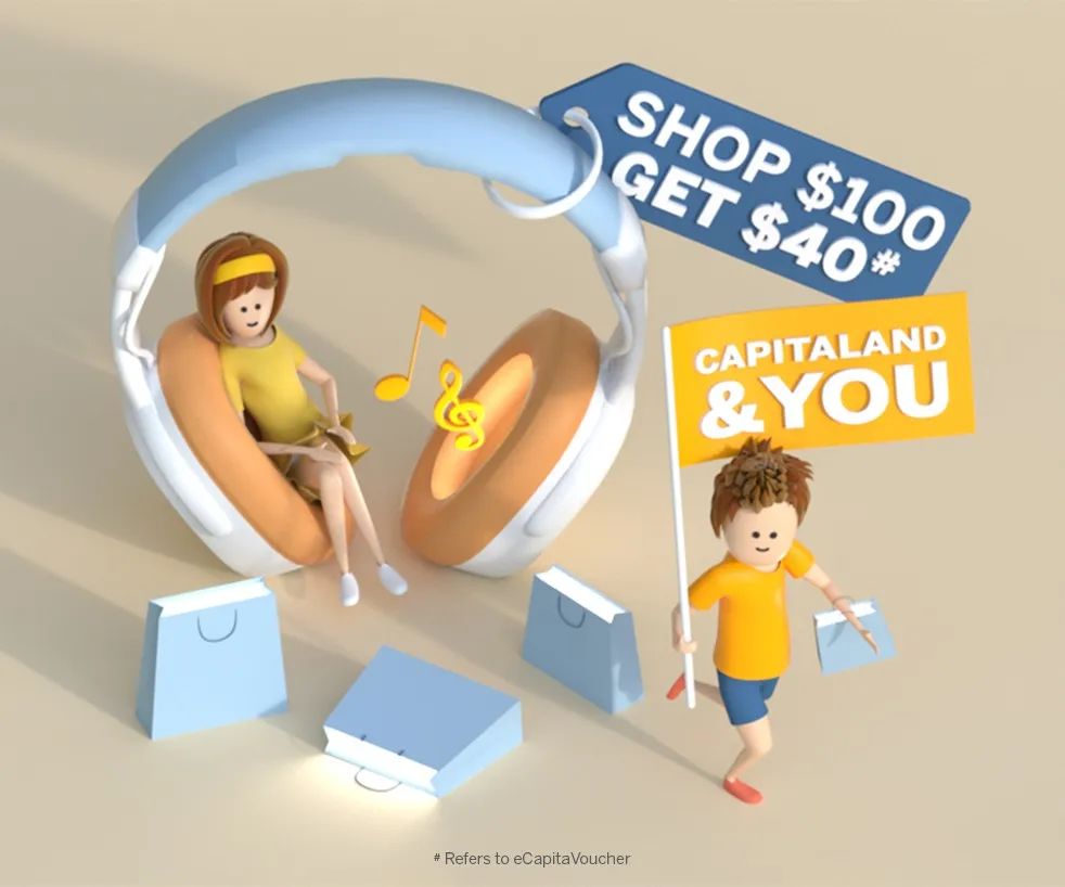 购物花费S$100可获得S$40凯德电子现金券购物活动将在以下商场举行