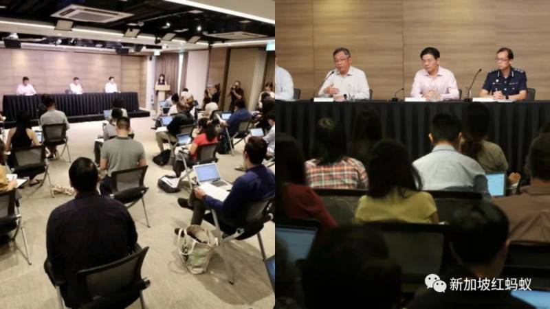 我国抗疫跨部门工作小组今早召开记者会,人与人之间坐的有点远......(联合早报)