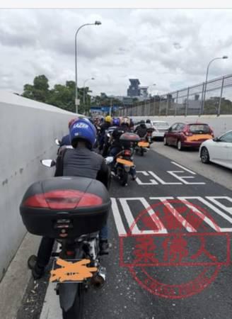 周六中午时段,在柔佛长堤从新加坡入境新山方向车辆大排长龙。